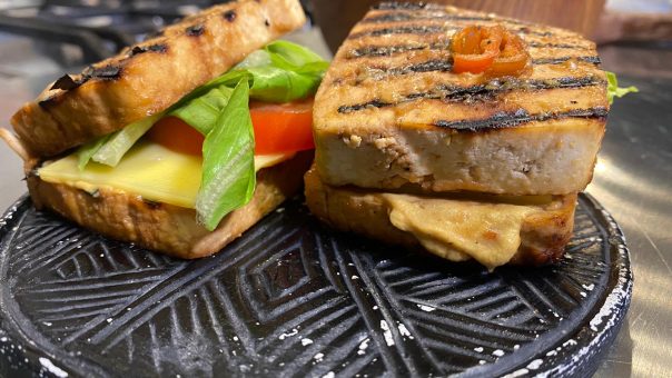 במהלך הצליה הטופו מתרכך וסופג את טעמי המרינדה.