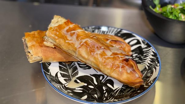 מחכים שהתערובת תתקרר וממלאים בדף פילו (כמו באגרול).