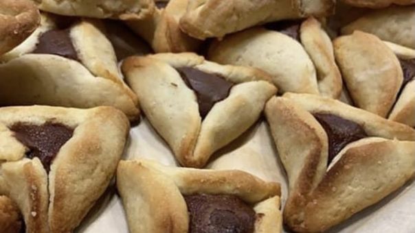 במרכז כל עיגול מניחים כחצי כפית של ממרח שוקולד וצובטים את הקצוות לקבלת צורת אוזן המן.
