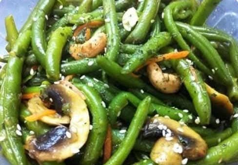 מבשלים את השעועית ומעבירים לקערת מים קרים על מנת לעצור את הבישול ולשמור על הצבע הירוק ומייבשים היטב